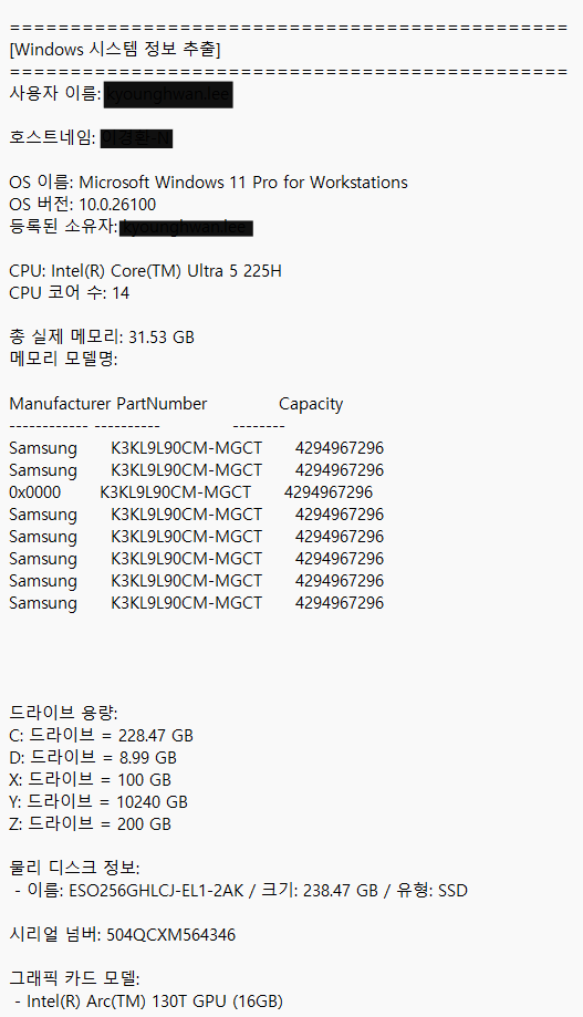 - 각 PC에서 생성된 system_info.txt를 수집 → Python으로 일괄 병합(엑셀/피벗 자동 생성)